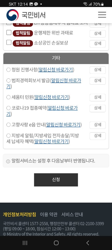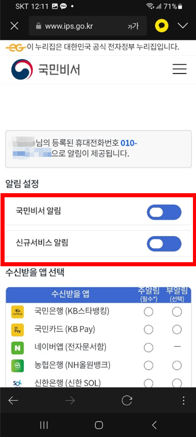 ๊ตญ๋ฏผ๋น์ ์๋ฆผ์๋น์ค ์ ์ฒญํ๊ธฐ (๊ฐ์ธํต๊ด๊ณ ์ ๋ถํธ ๋์ฉ ์๋ฐฉ)