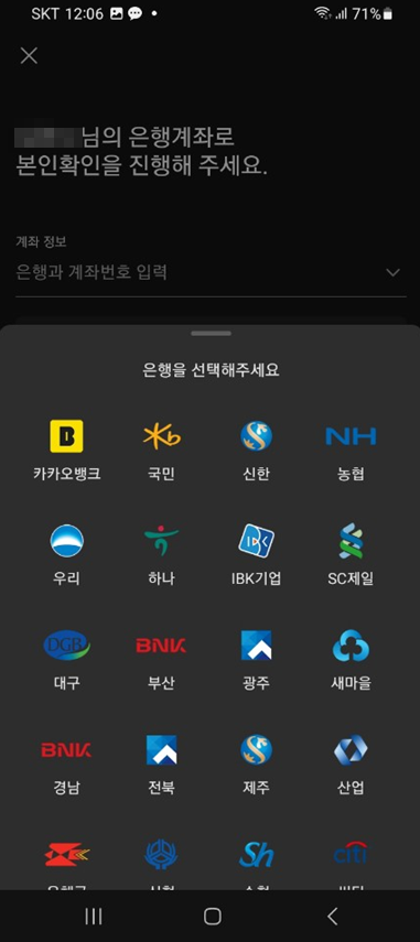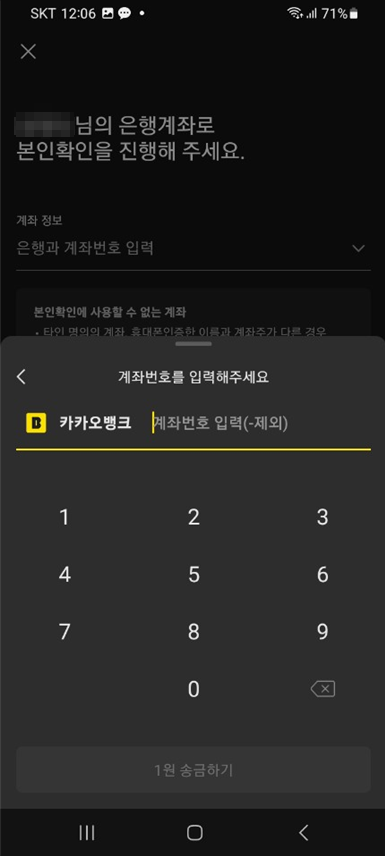 5. ์ํ ๊ณ์ข๋ก ๋ณธ์ธ์ธ์ฆ์ ์ํด ์ฌ์ฉํ๋ ์ํ๊ณ์ข๋ฅผ ์ ํํ๊ณ ๊ณ์ข๋ฒํธ๋ฅผ ์ ๋ ฅํฉ๋๋ค.